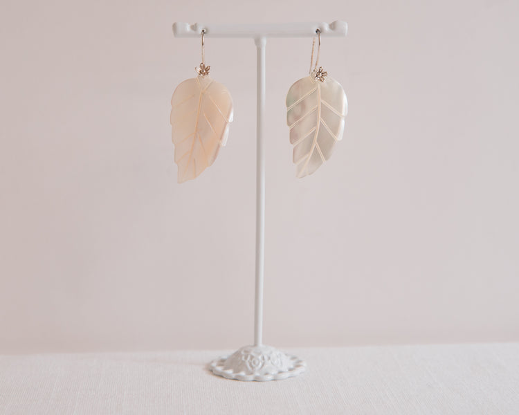 Mother of Pearl Carved Leaf Earrings